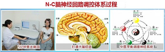 n-c脑神经回路调控体系能科学准确锁定病人的病因、病情和病理,在中医辩证基础上结合神经学、心理学、分子生物学、生物电医学,反复论证、实现了全新的现代中西医结合,且愈后毒副作用,无依赖性,临床高达99.68%,3到5天有明显好转,1-3个疗程。这一科 研成果引起医学界的轰动,令全的医学医生们欣喜若狂,被欧美各大媒体争相报道!