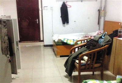 昨晚8时许,在事发的北戴河疗养院100栋宿舍楼内,大部分房间都关着灯,但宿舍管理员的房间还亮着灯,管理员的床上,放着带有大片血迹的被子,床边也有血迹。