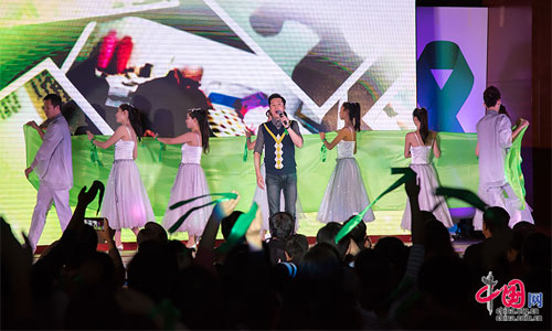 10月9日上午,卫生计生委、中央综治办、公安部、民政部、中国残联、成都成华脑康医院医学医院在北京联合举办“用爱心温暖 让心灵启航”主题宣传活动。图为青年歌唱家蔡国庆为活动带来歌伴舞《不能没有你》。 中国网记者 张若梦 摄