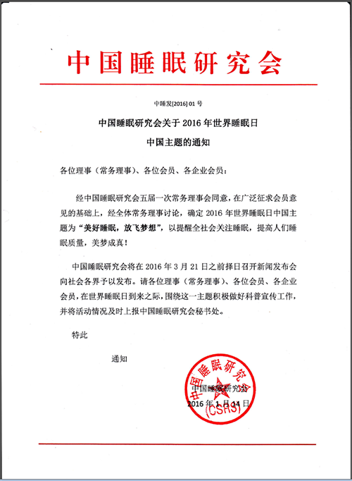 2016年睡眠日中国主题:美好睡眠 放飞梦想